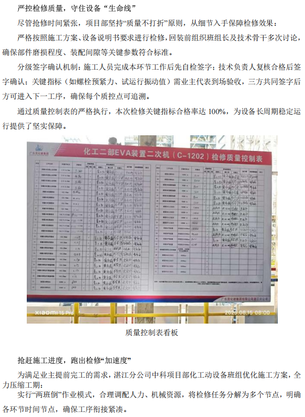 中科煉化 EVA 二次機搶修紀(jì)實