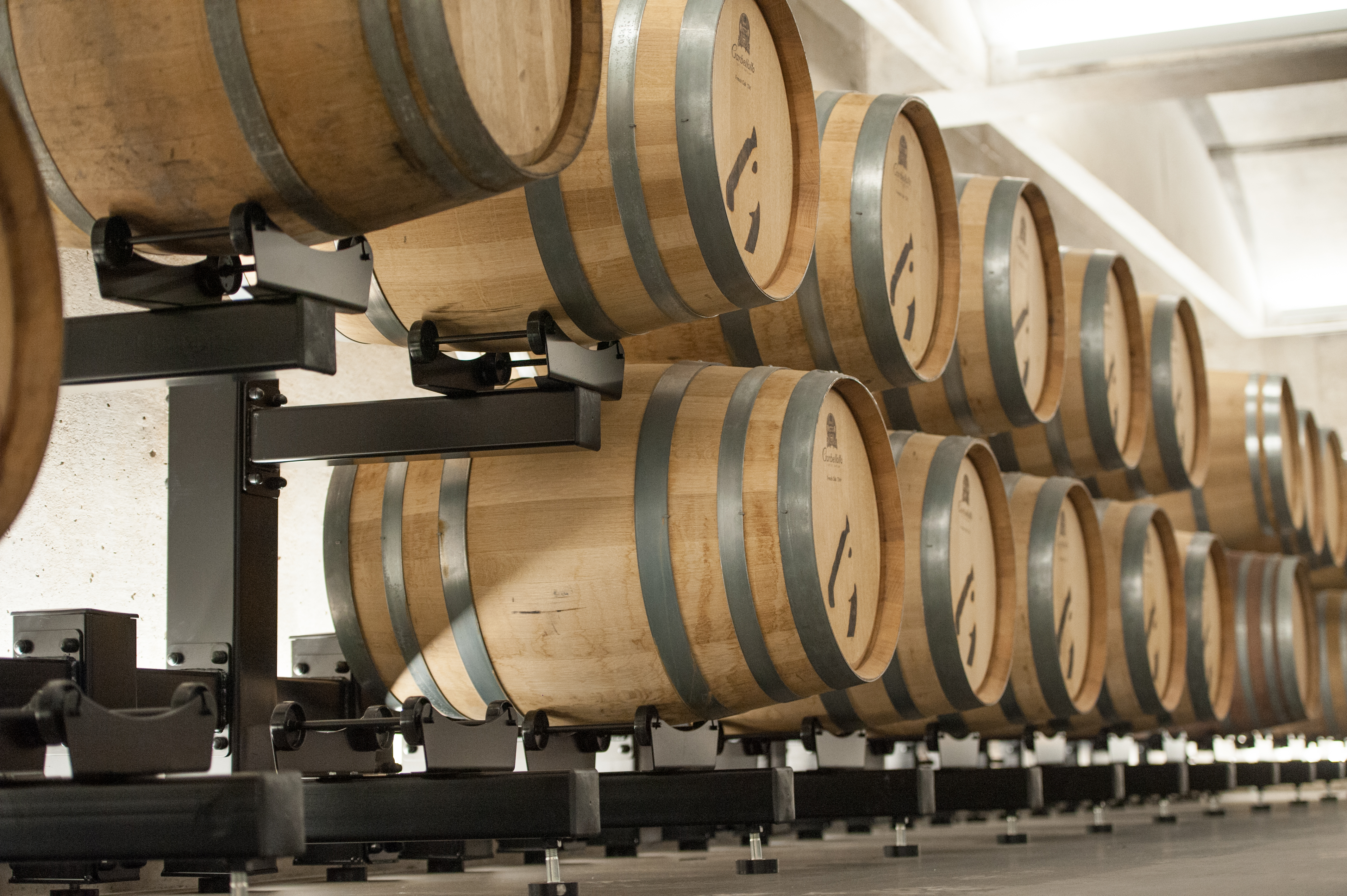 Gallery Description Our custom Racking system was recently installed at Dark Horse Estate Winery in Grand Bend Ontario. This particular racking system we designed held 101 barrels and 2 rotary systems. This system is functional and looks great.